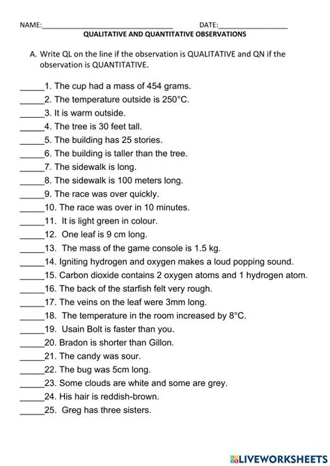 Qualitative And Quantitative Observations Worksheet